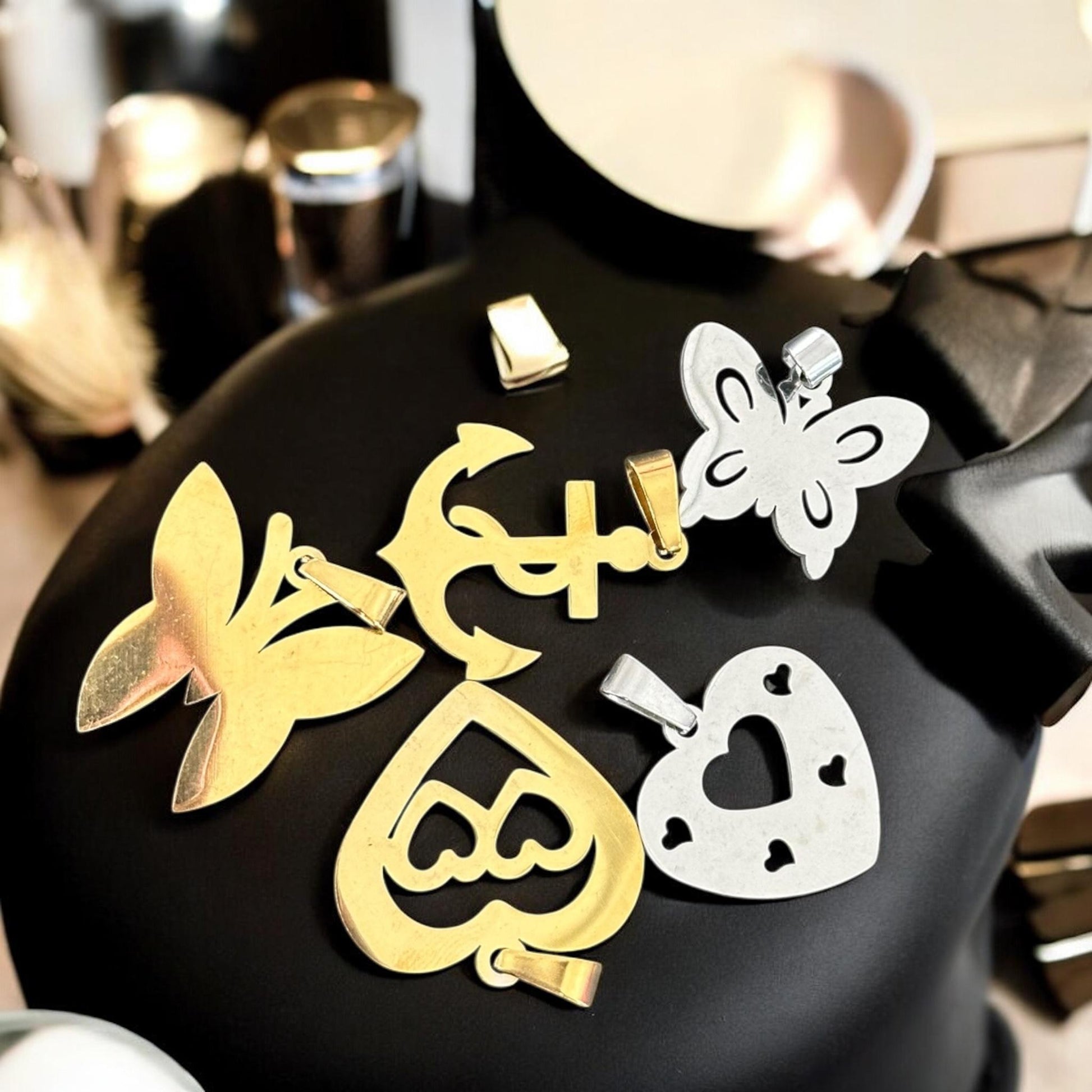 12 Collares con Dije Figuras Dorados/Plateados Acero Inoxidable $9 c/u