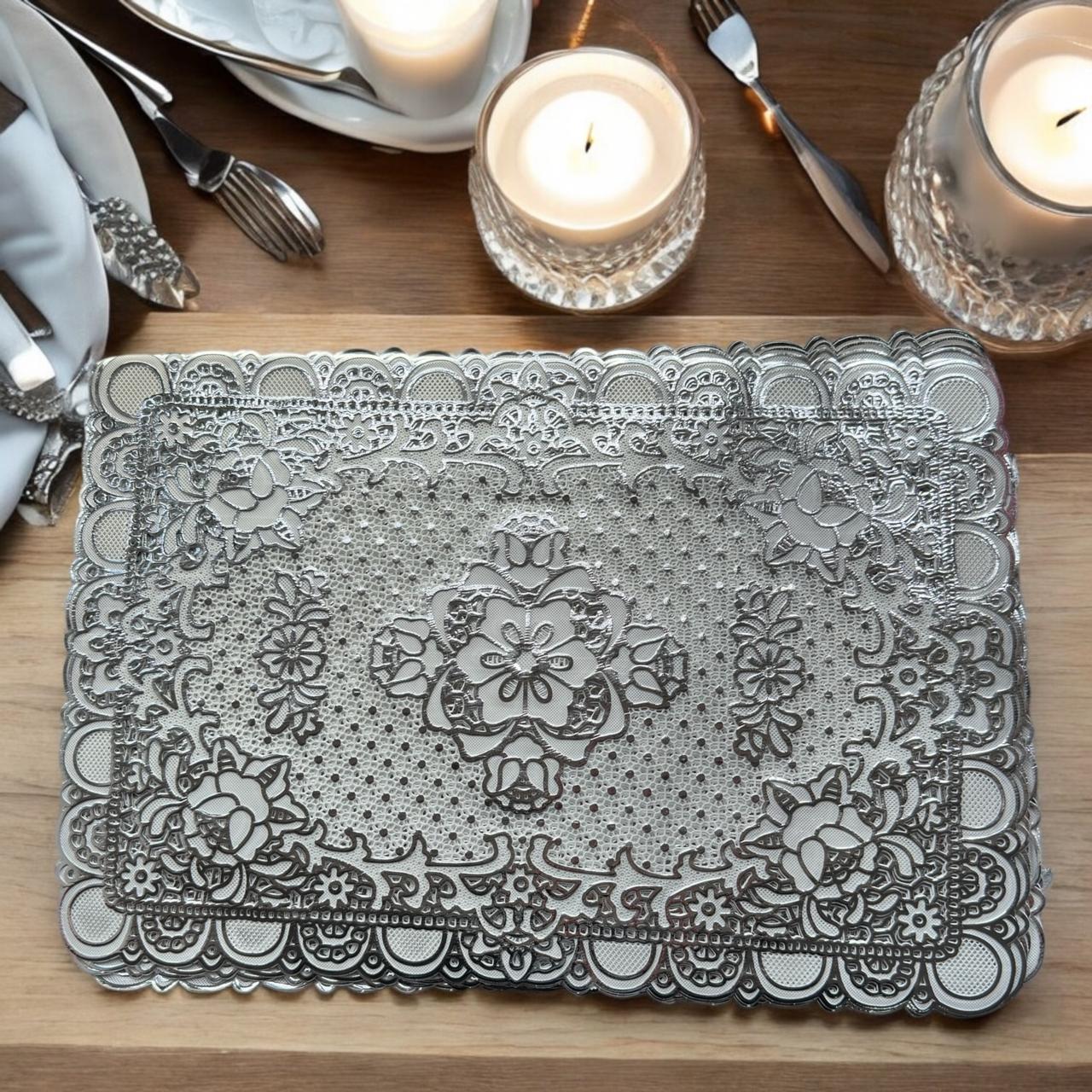12 Manteles Individuales Rectangulares Dorado/Plateado $5 c/u